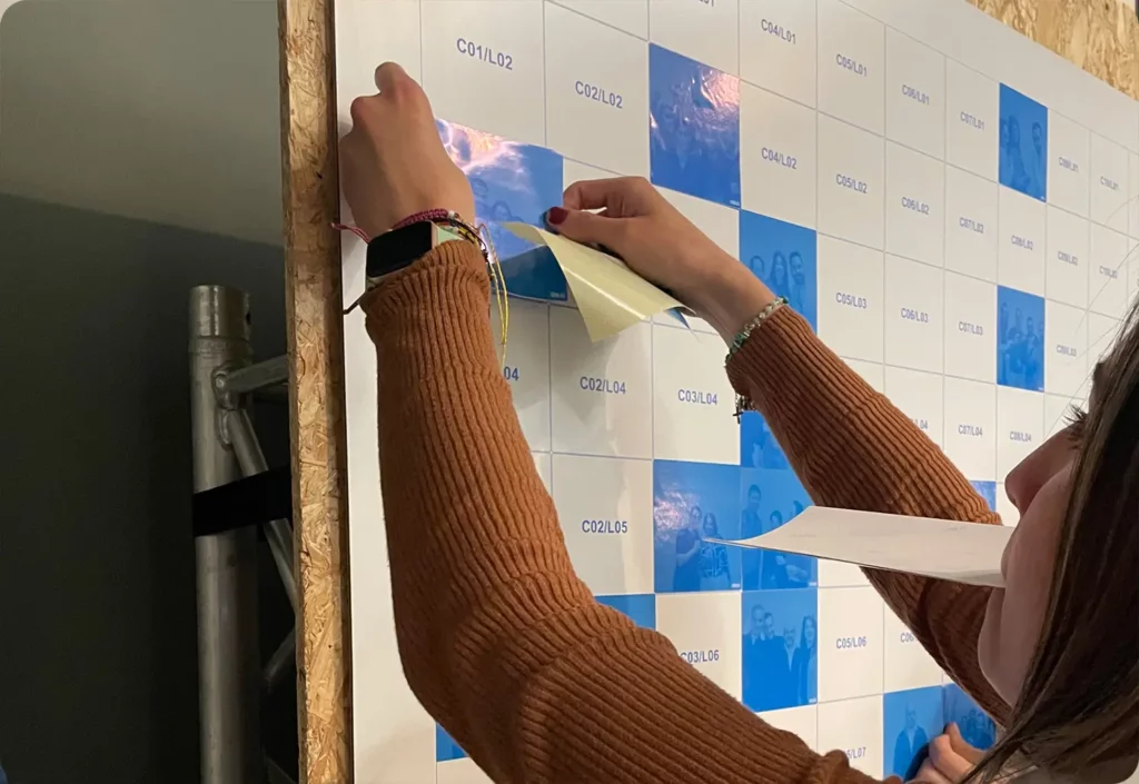 Pour rendre votre road show encore plus dynamique et interactif, Tcheezebox vous propose d’intégrer l’animation Mosaic Wall ! Cette animation visuelle unique qui consiste à créer un mur interactif composé de photos prises par les collaborateurs en temps réel. Cela permet de créer une ambiance conviviale et ludique, tout en offrant un moyen original de partager des moments de l’événement avec tous les participant. L’un des plus grands avantages du Mosaic Wall est qu’il peut être utilisé tout au long du road show, ajoutant ainsi une animation continue qui renforce l’engagement et l’interaction entre collègues mais aussi sur vos différents sites.